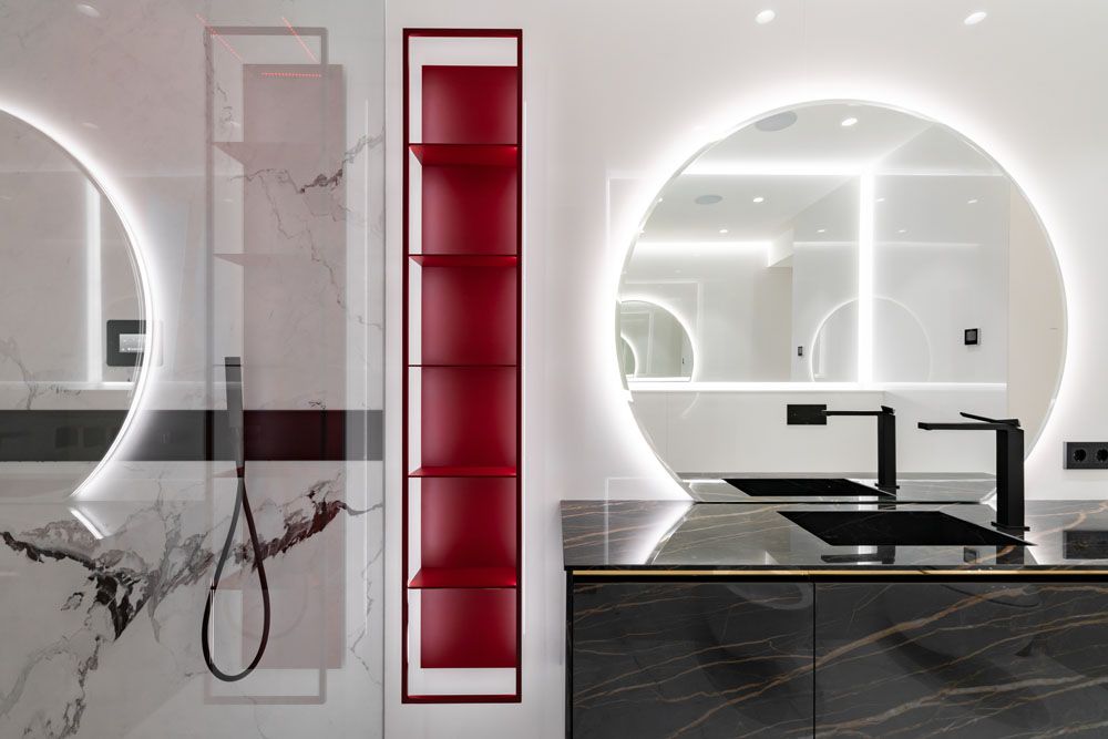 The choice and positioning of the lightning fixtures was also an object of design, with the purpose of removing ceiling lights and inserting punctual elements in space instead. The full makeover of the bathrooms was also a design theme.