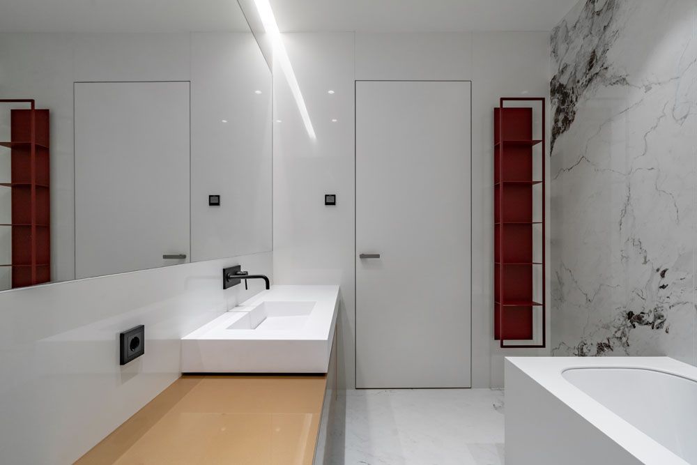 Located in a building situated in a green, luxurious area in the north of Bucharest, Romania, V24 is designed by Sami Bumbu Studio to be a minimalist concept with marble accents.